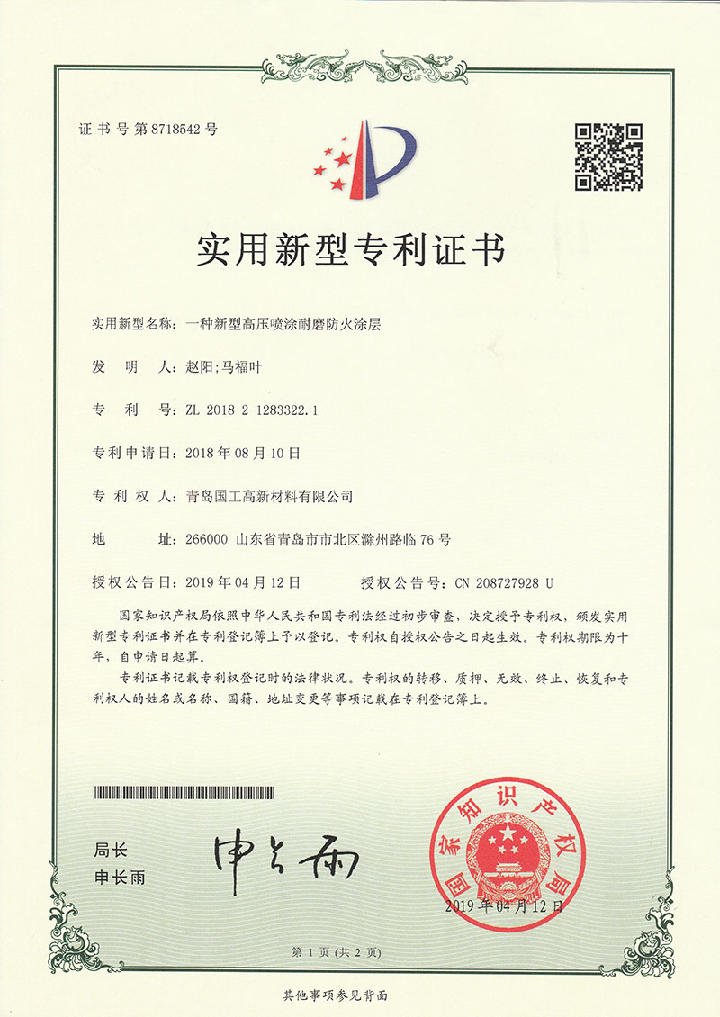 一種新型高(gāo)壓噴塗耐磨防火(huo)塗層